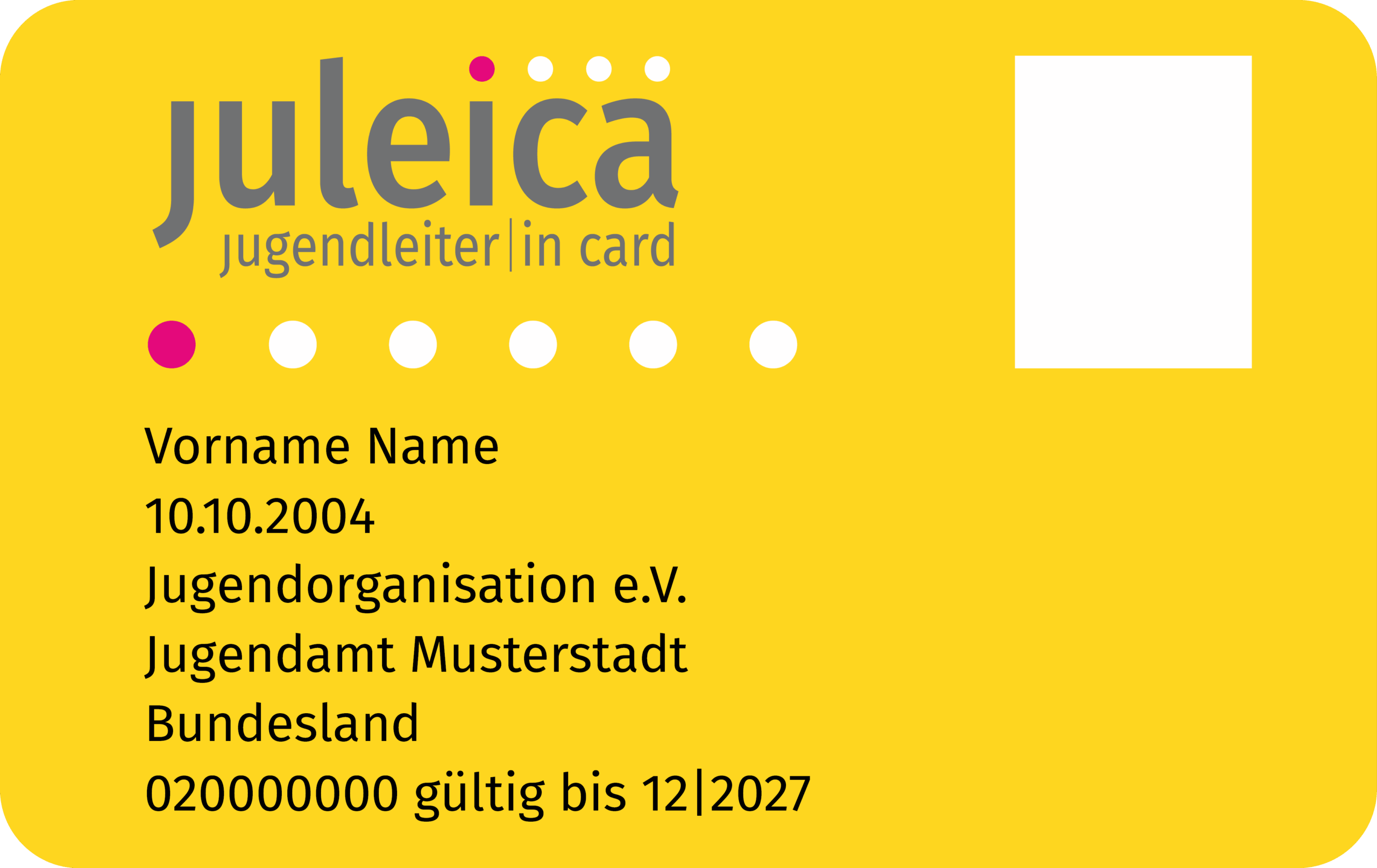 Die Jugendleiter*in-Card (Juleica) ist der bundesweit einheitliche Ausweis für ehrenamtliche Mitarbeiter*innen in der Jugendarbeit. Sie dient zur Legitimation und als Qualifikationsnachweis der Inhaber*innen.