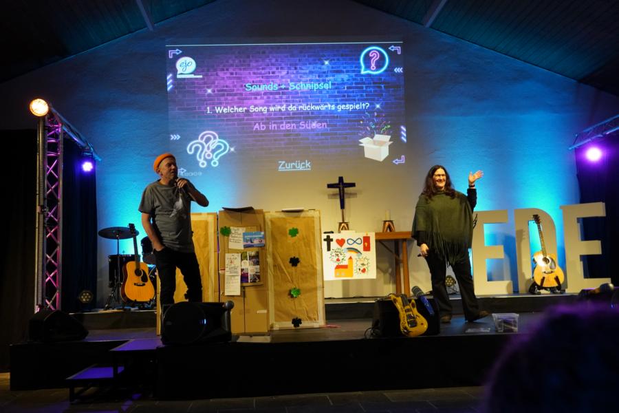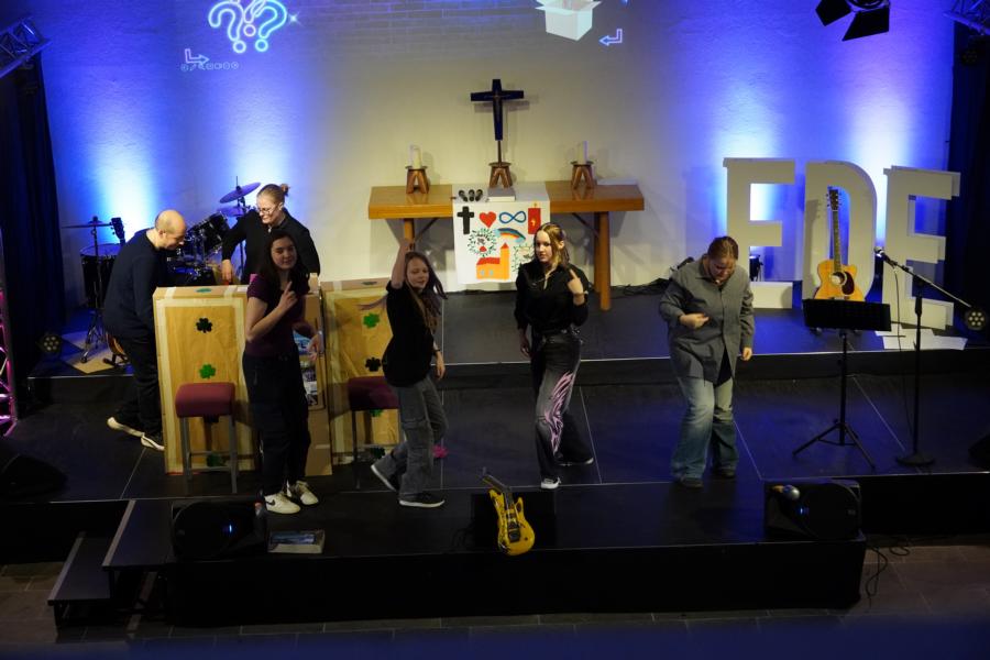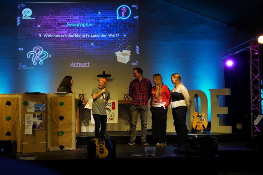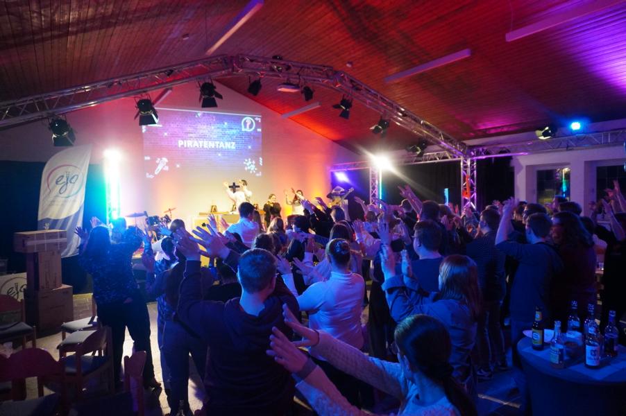 Weitere Highlights waren das „Powersingen“ der „ejo-Schlager“ mit Joe, der nach und nach sangesfreudige Jugendliche zur Unterstützung auf der Bühne versammelte, sowie das gemeinsame „Powertanzen“, das viele von der letzten Juleica-Schulung in guter Erinnerung hatten.